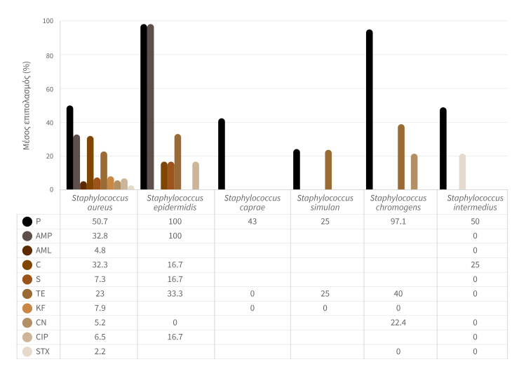 Ορισμένες μελέτες έχουν δείξει ότι τα βακτήρια του γένους Staphylococcus spp έχουν αναπτύξει ανθεκτικότητα στα αντιβιοτικά που χρησιμοποιούνται συνήθως στην κτηνοτροφία.